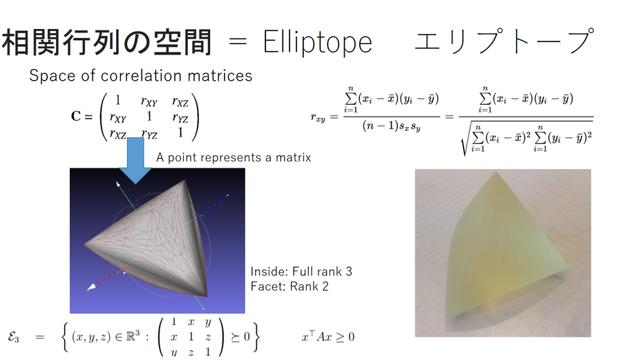 This meshed 3D elliptope can be opened using MeshLab, for example.